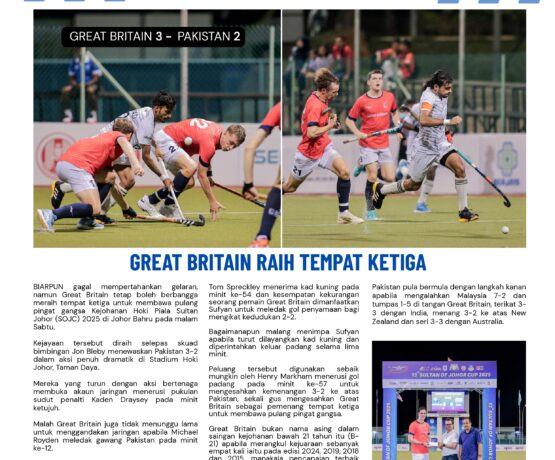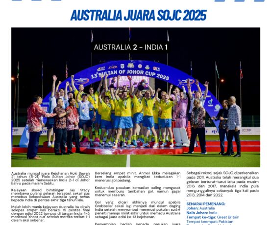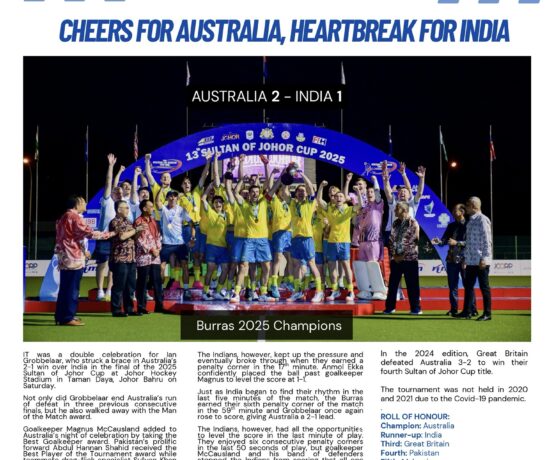 IT was a double celebration for Ian Grobbelaar, who struck a brace inAustralia’s 2-1 win over India in the final of the 2025 Sultan of Johor Cup atJohor Hockey Stadium in Taman Daya, Johor Bahru on Saturday.Not only did Grobbelaar end Australia’s run of defeat in three previousconsecutive finals, but he also walked away with…